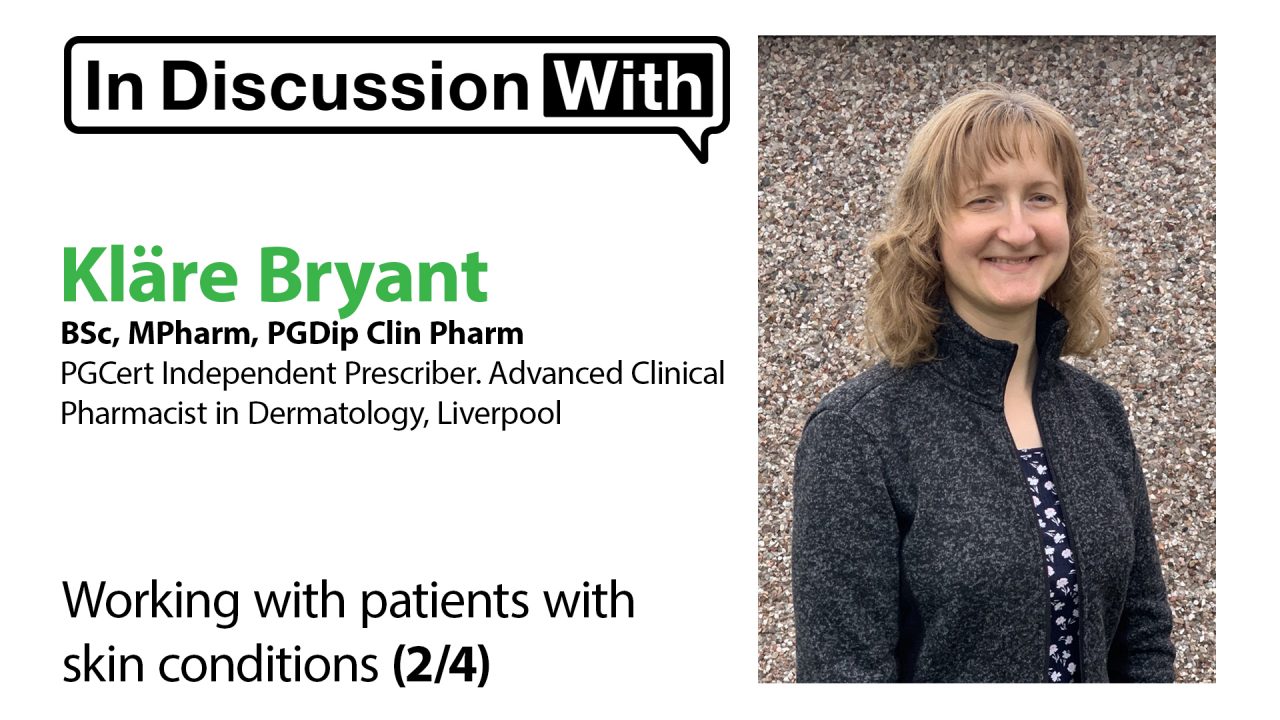 Kläre Bryant is an advanced clinical pharmacist in dermatology at Liverpool University Hospitals NHS foundation trust. She has an outpatient clinic at Broadgreen Hospital for patients receiving biologic therapies and another clinic at Aintree hospital for patients receiving systemic disease modifying anti-rheumatic drugs (DMARDs)