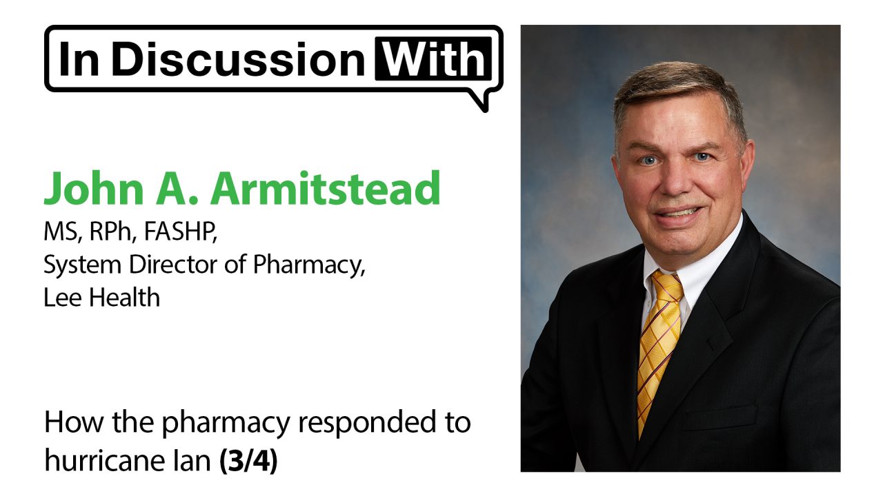 For a period of 48 hours after hurricane Ian, the five hospital outpatient pharmacies were the only operational pharmacies for the entire county and had to deal with a range of medication needs, John A. Armitstead, System Director of Pharmacy at Lee Health in Fort Myers, Florida, explains.