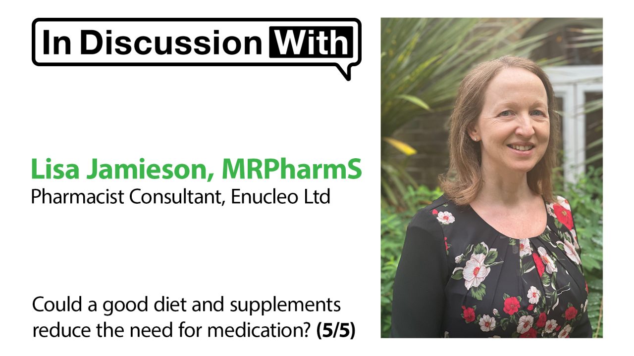 Lisa Jamieson currently works as a pharmacist consultant from her own company, Enucleo Ltd. She has a portfolio career with two main roles – first, as a senior consultant in a market access consultancy, working at the interface between the pharmaceutical industry and the NHS and second, as a pharmacist consultant in nutritional medicine. This latter role involves educating pharmacists and other healthcare professionals either in writing or as a speaker at conferences.
