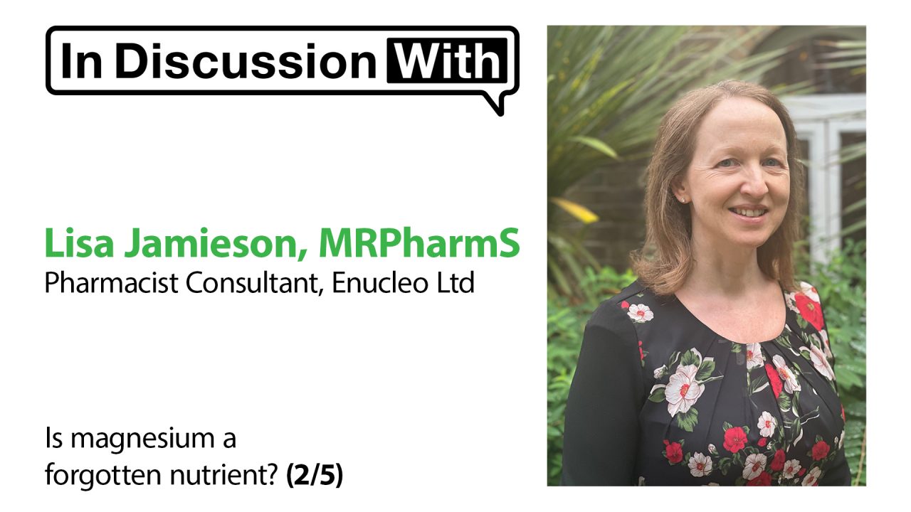 Lisa Jamieson currently works as a pharmacist consultant from her own company, Enucleo Ltd. She has a portfolio career with two main roles – first, as a senior consultant in a market access consultancy, working at the interface between the pharmaceutical industry and the NHS and second, as a pharmacist consultant in nutritional medicine. This latter role involves educating pharmacists and other healthcare professionals either in writing or as a speaker at conferences.