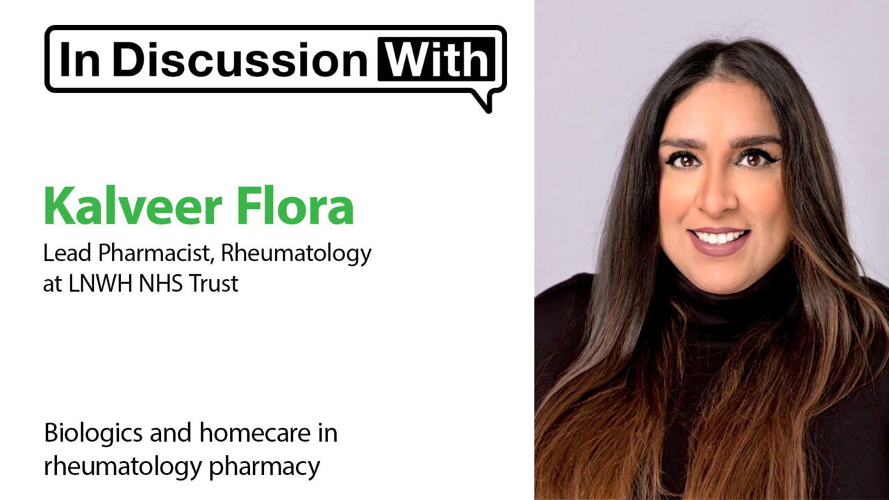 Kalveer Flora leads the rheumatology specialist pharmacy service at London Northwest University Healthcare Trust. She also serves as the lead pharmacist for the Clinical Reference Group (CRG) for NHS England. She chairs Rheumatology Pharmacists UK which is a group of specialist pharmacists and pharmacy staff working within the space of rheumatology and biologics and she is co-chair of the Sustainability Special Interest Group (SIG) of the British Society of Rheumatology. Kalveer Flora’s work embraces a variety of different aspects “but essentially it’s overseeing the rheumatology services to patients and that can be a wide range of inflammatory conditions”, she says.